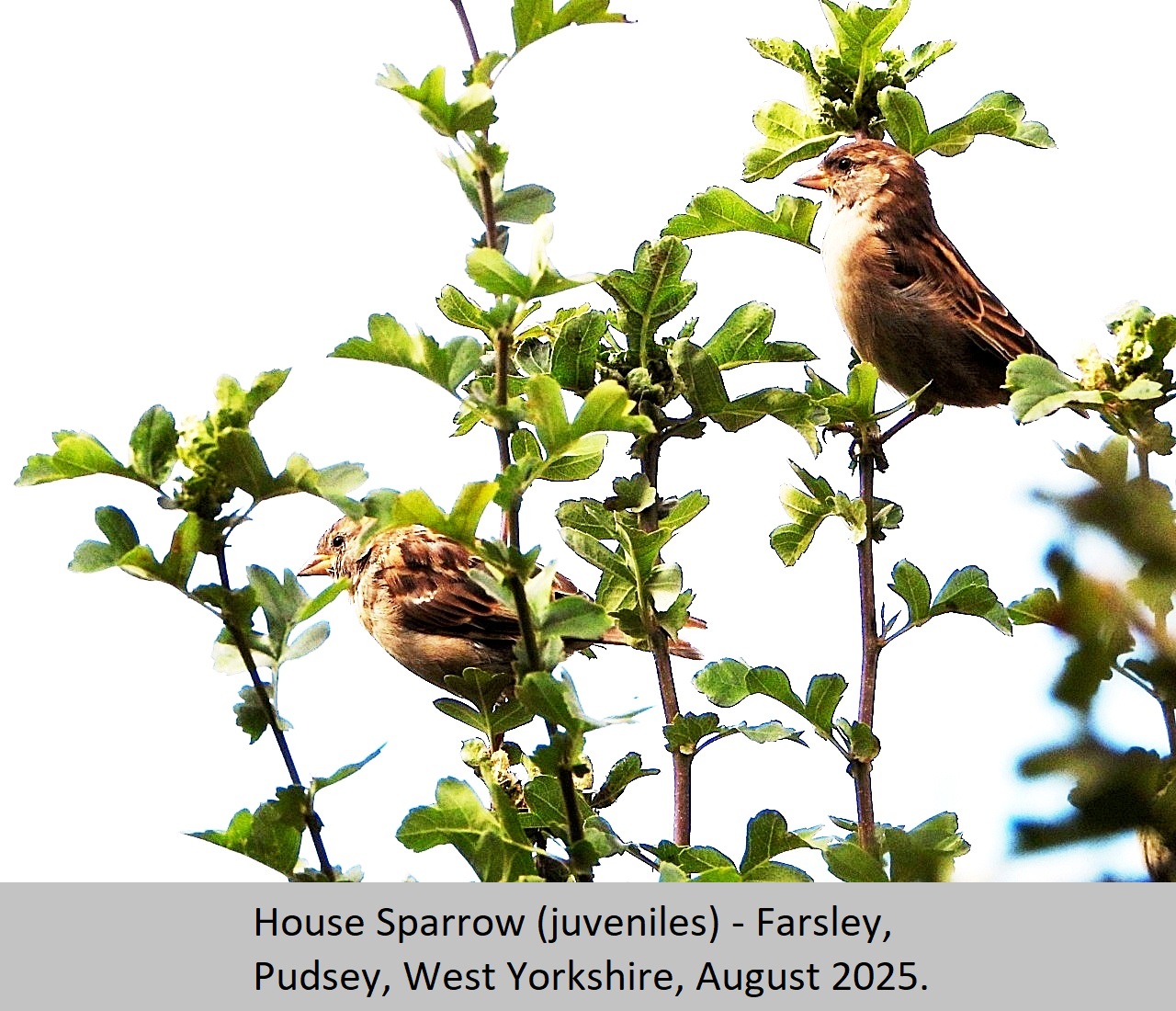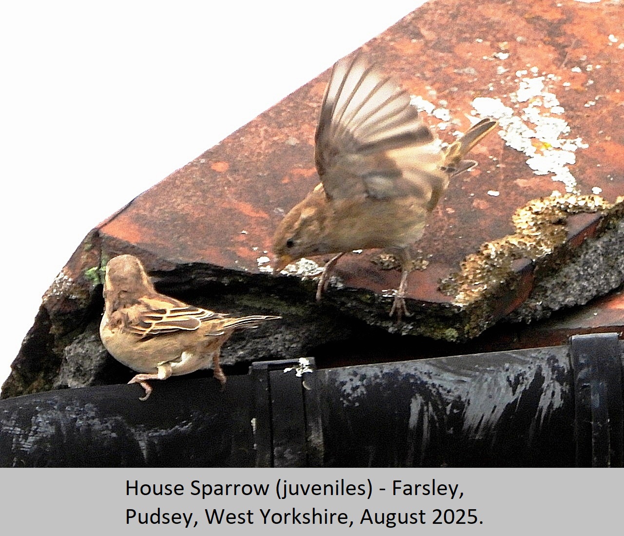 House Sparrow: UK Status: Native and resident. Habitat: Having once been a common bird in all of the British Isles, this bird since 1977 has declined in numbers by as much as 70%. This decline is mainly due to modern building methods, and home improvement. House Sparrows are found in many habitat types, but in the UK are mainly urban and suburban. There are probably people in a few parts of the UK, who have never seen one. Breeding: Males and females are sexually dimorphic, the male has a blotchy black bib under his chin, where as the female lacks the bib. They nest under the eaves of older buildings, especially suburban homes. They will occasionally nest on well sheltered rock ledges. Nests are basic and flimsy, made of dried grass, straw and a few feathers. They lay about four to six, off white eggs, blotched with dark grey brown markings. There are usually at least two broods a year, sometimes more. Comment: This bird is to be found throughout the world, especially around older buildings. In the British Isles it is still reasonably common where older buildings exist. Widely spread, though now more localised, throughout the British Isles. The most obvious difference between the Eurasian House Sparrow, and the Eurasian Tree Sparrow is the colour of the crown. House Sparrows have a grey crown, whereas Tree Sparrows are chestnut brown on the crown of their heads.