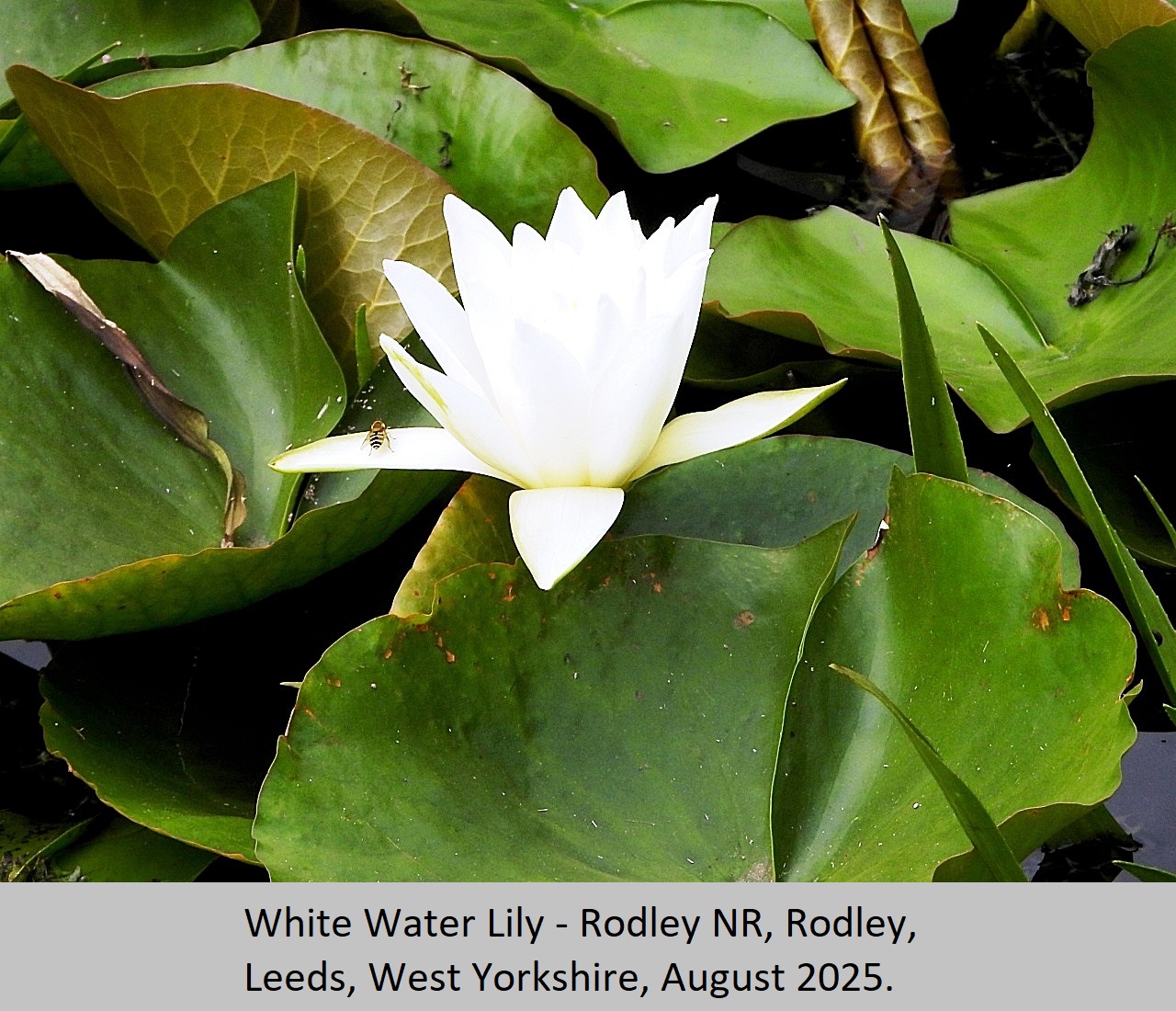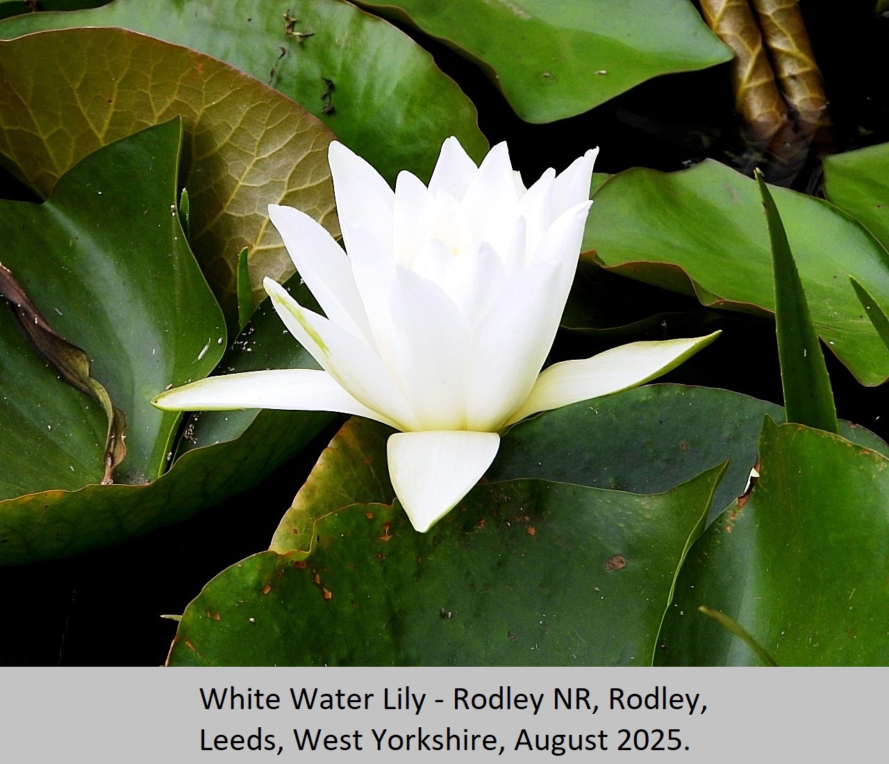 White Water Lily: UK Status: Resident. Dimensions: Flowers are up to 30cm diameter, and 25cm high. Flowering Period: June to August. Habitat: This beautiful summer flowering pant grows in slow moving, or still water that is about 30cm to 150cm in depth. They can be seen in large ditches, canals, ponds and lakes. It's large leathery leaves float on the surface of the water, and can be up to 30cm in diameter. Comment: Fairly common throughout the British Isles, with the exceptions of north Scotland, and south west England where it is absent.